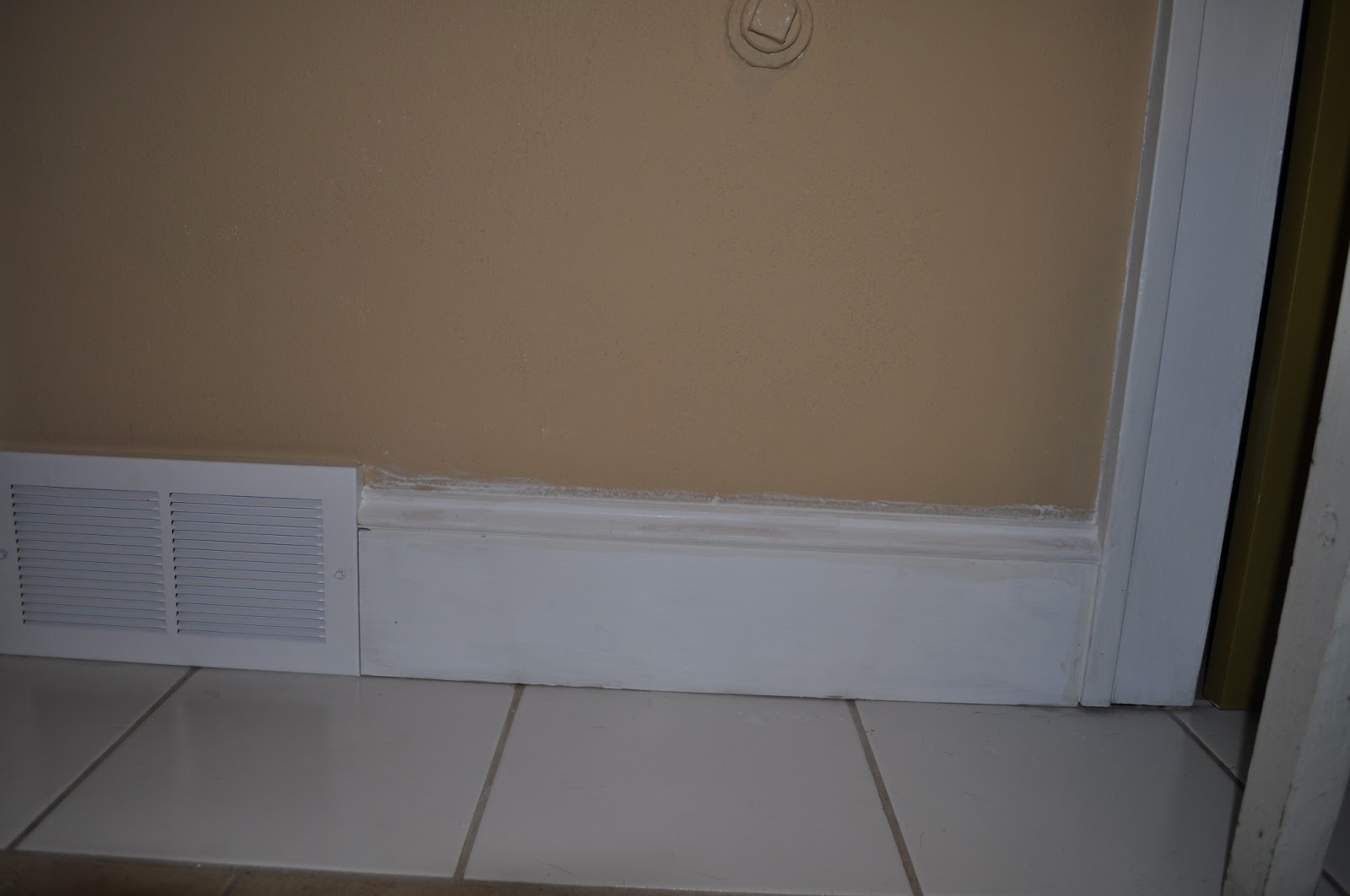 After the caulks dry, I go back and touch up any areas that need touching up with caulk and let it dry.  Then starts the fun part of painting the baseboards until they are a slick, shiny white.